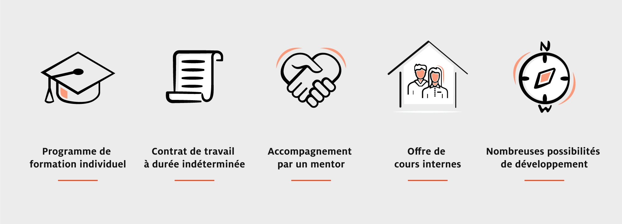 Pendant 3 à 6 mois, tu seras préparé(e) en tant qu'Executive Trainee à une fonction de direction en tant que Store Manager dans le Retail. Tu apprendras ainsi à connaître pas à pas tous les domaines spécialisés, les systèmes et les processus de Manor. Un stage au siège te permettra en outre de comprendre les rapports entre les magasins et le siège et de faire la connaissance d'interlocuteurs importants. Au sein de ta région linguistique, tu pourras visiter différents sites et profiter de l'expérience de différentes personnes. Cela te permettra d'acquérir une très bonne compréhension de Manor et de te préparer de manière optimale à ta fonction cible.